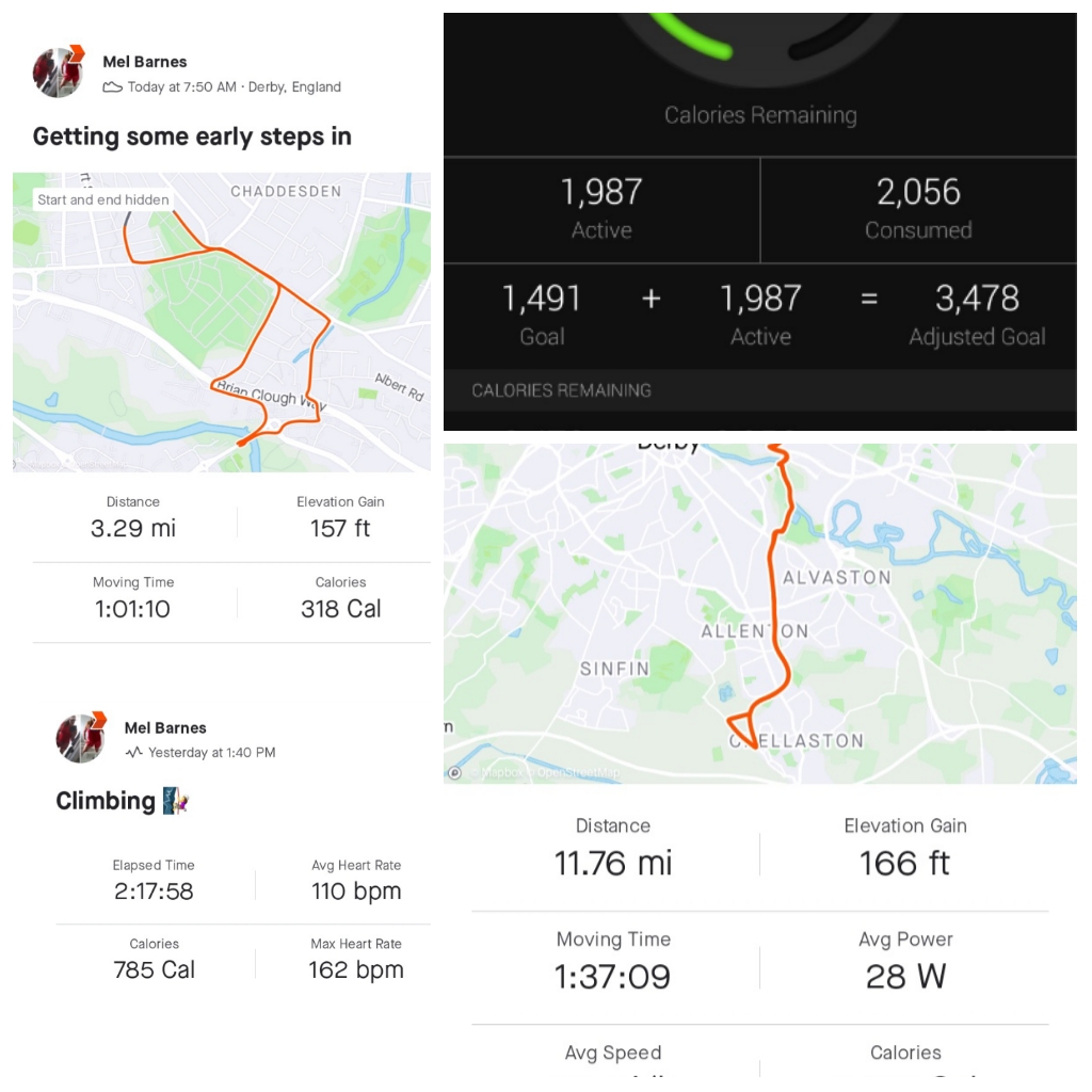 Sunday was a great active day with an early dog walk, nearly 12 mile bike ride ride through an afternoon of climbing so a fab calorie deficit!